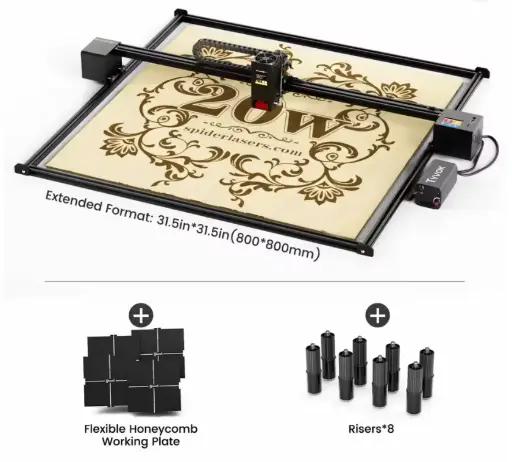 Cnc Corte Laser Tyvok Spider X1S 20W 800*800mm + Asistente de Aire(50L) + Panal de abejas + Pies de altura